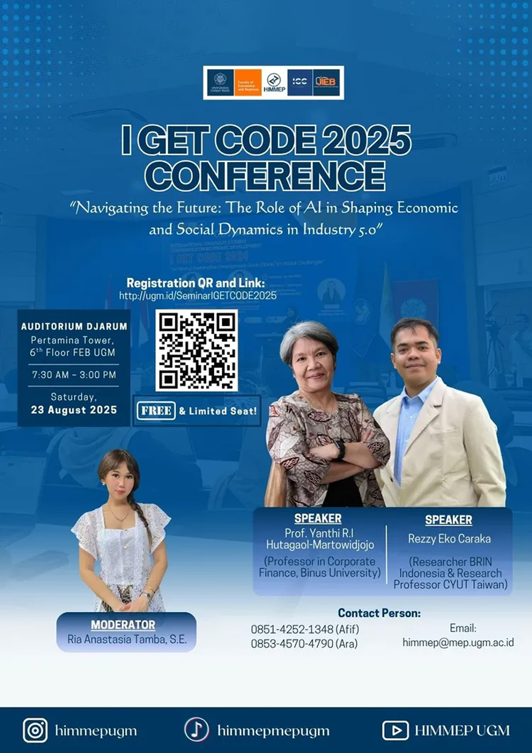The Association of Development Economics Master’s Students (HIMMEP) at Universitas Gadjah Mada is organizing the International Graduate Student Conference on Economic Development (IGETCODE) 2025, with the theme “Navigating the Future: The Role of AI in Shaping Economic and Social Dynamics in Industry 5.0.”